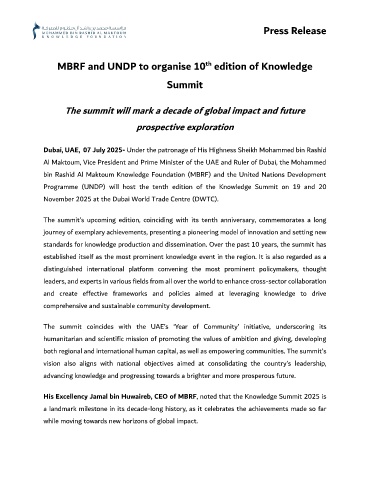 bin Rashid Al Maktoum Knowledge Foundation (MBRF) and the United Nations Development