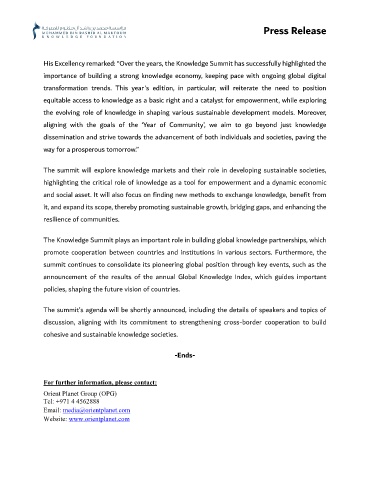 His Excellency remarked: “Over the years, the Knowledge Summit has successfully highlighted the
