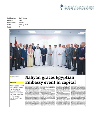 Publication: Gulf Today Country: UAE Circulation: 49,500 Date: 23 July 2025 Page: 4