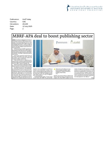 Publication: Gulf Today Country: UAE Circulation: 49,500 Date: 12 July 2025 Page: 2
