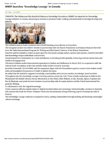 7/30/25, 10:47 AM MBRF launches ‘Know edge Lounge’ in Canada