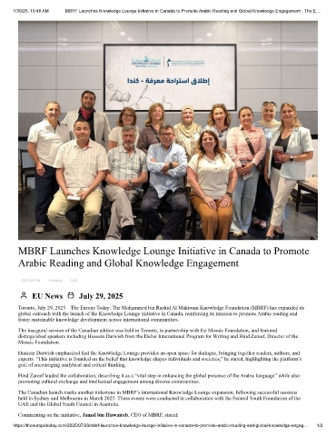 https://theeuropetoday.com/2025/07/29/mbrf-launches-knowledge-lounge-initiative-in-canada-to-promote-arabic-reading-and-global-knowledge-engag… 1/2