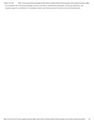 7/29/25, 10:24 AM MBRF secures Egypt’s Media and Digital Transformation Foundation Award for Best Knowledge and Innovation-Supporting Institut…