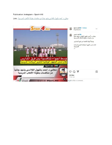 Publication: Instagram – Sport 4 All Link: ةيسردملا باعللأا ةلوطب تاسفانم نم ًابناج دهشي يسلافلا لوهلاب دمحأ .د يلاعم