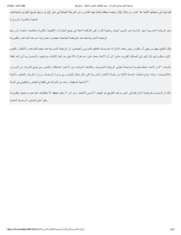 موﺟﻧﻟاو لﺎطﺑﻷاو بھاوﻣﻠﻟ ﺎﻣﺟﻧﻣ دﻌﺗ ﺔﯾﺳردﻣﻟا ﺔﺿﺎﯾرﻟا نإ ،ﻲﻌﻣﺎﺟﻟاو ﻲﺳردﻣﻟا مﯾﻠﻌﺗﻟا تﺎﺳﺳؤﻣﻟ تارﺎﻣﻹا دﺎﺣﺗا سﯾﺋر ،موﺗﻛﻣ لآ ﻲطﺑ نﺑ لﯾﮭﺳ ﺦﯾﺷﻟا لﺎﻗو