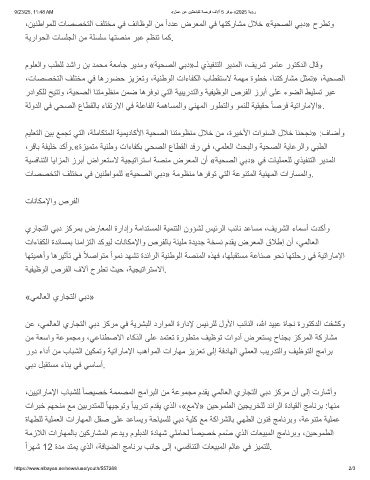 ،نﯾﻧطاوﻣﻠﻟ تﺎﺻﺻﺧﺗﻟا فﻠﺗﺧﻣ ﻲﻓ فﺋﺎظوﻟا نﻣ اددﻋ ضرﻌﻣﻟا ﻲﻓ ﺎﮭﺗﻛرﺎﺷﻣ لﻼﺧ «ﺔﯾﺣﺻﻟا ﻲﺑد» حرطﺗو