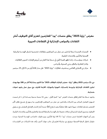 فﺪﻬﺑ ﺔﻬﺟ    180    ﻦﻣ ﺮﺜﻛأ ﺔﻛرﺎﺸﻤﺑ ،ﺮﻬﺸﻟا اﺬﻫ " 2025    ﻒﺋﺎﻇﻮﻠﻟ تارﺎﻣﻹا ضﺮﻌﻣ  -        ﺔﻳؤر" ﻖﻠﻄﻨﻳ  :    2025    ،ﺮﺒﻤﺘﺒﺳ    21   ،ي ﺑد