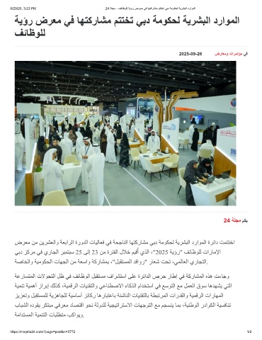 9/29/25, 3:23 PM 24 ﺔﻠﺟﻣ - فﺋﺎظوﻠﻟ ﺔﯾؤر ضرﻌﻣ ﻲﻓ ﺎﮭﺗﻛرﺎﺷﻣ مﺗﺗﺧﺗ ﻲﺑد ﺔﻣوﻛﺣﻟ ﺔﯾرﺷﺑﻟا دراوﻣﻟا