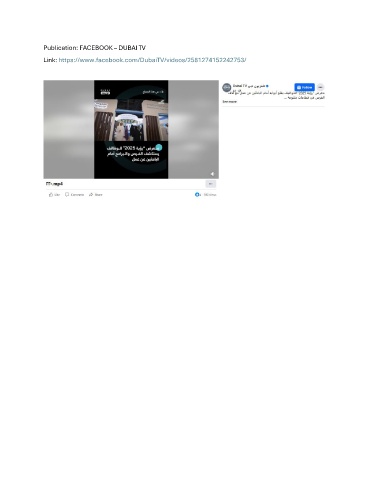 Publication: FACEBOOK – DUBAI TV Link: https://www.facebook.com/DubaiTV/videos/2581274152242753/