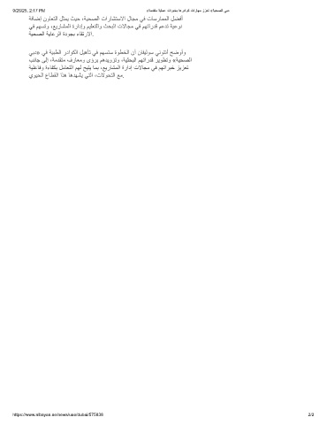 ﻲﺑد» ﻲﻓ ﺔﯾﺑطﻟا رداوﻛﻟا لﯾھﺄﺗ ﻲﻓ مﮭﺳﺗﺳ ةوطﺧﻟا نأ نﺎﻔﯾﻟوﺳ ﻲﻧوﺗﻧأ ﺢﺿوأو