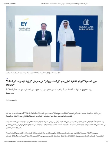 9/26/25, 2:17 PM "2025 فﺋﺎظوﻠﻟ تارﺎﻣﻹا ﺔﯾؤر" ضرﻌﻣ ﻲﻓ "ﻎﻧوﯾو تﺳﻧرإ" ﻊﻣ نوﺎﻌﺗ ﺔﯾﻗﺎﻔﺗا ﻊﻗوﺗ "ﺔﯾﺣﺻﻟا ﻲﺑد"