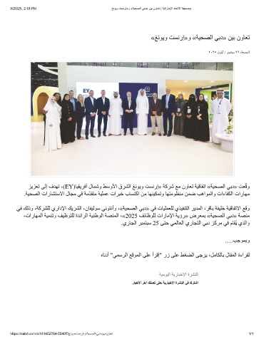 9/26/25, 2:18 PM ﻎﻧوﯾو تﺳﻧرإ»و «ﺔﯾﺣﺻﻟا ﻲﺑد» نﯾﺑ نوﺎﻌﺗ | ﺔﯾﺗارﺎﻣﻹا دﺎﺣﺗﻻا ﺔﻔﯾﺣﺻ»