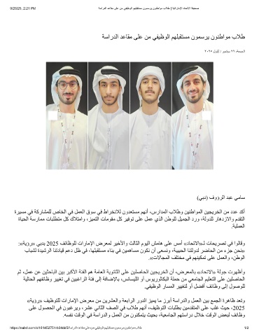 9/26/25, 2:21 PM ﺔﺳاردﻟا دﻋﺎﻘﻣ ﻰﻠﻋ نﻣ ﻲﻔﯾظوﻟا مﮭﻠﺑﻘﺗﺳﻣ نوﻣﺳرﯾ نوﻧطاوﻣ بﻼط | ﺔﯾﺗارﺎﻣﻹا دﺎﺣﺗﻻا ﺔﻔﯾﺣﺻ