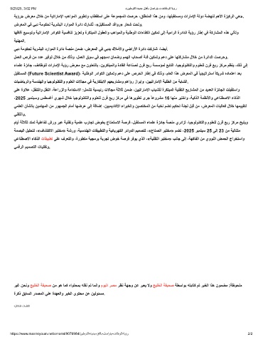 لﺑﻘﺗﺳﻣﻟا (Future Scientist Award)، ﺔﯾﻧطوﻟا رداوﻛﻟا نﯾﻛﻣﺗو مﻋد ﻰﻠﻋ صرﺣﻟا رﺎطإ ﻲﻓ كﻟذو ،مﺎﻌﻟا اذھ ضرﻌﻣﻟا ﻲﻓ ًﺎﯾﺟﯾﺗارﺗﺳا ًﺎﻛﯾرﺷ هدﺎﻣﺗﻋا دﻌﺑ