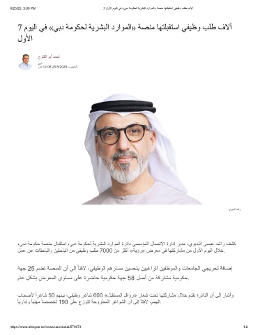 9/25/25, 3:09 PM 7 لوﻷا موﯾﻟا ﻲﻓ «ﻲﺑد ﺔﻣوﻛﺣﻟ ﺔﯾرﺷﺑﻟا دراوﻣﻟا» ﺔﺻﻧﻣ ﺎﮭﺗﻠﺑﻘﺗﺳا ﻲﻔﯾظو بﻠط فﻻآ