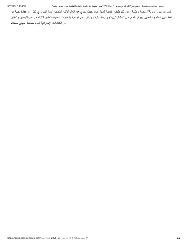 9/25/25, 3:13 PM "تﯾﻠﯾا سﻧزﯾﺑ - ﻲﺑد ﺔﻣوﻛﺣﻟ ﺔﯾرﺷﺑﻟا دراوﻣﻟا ةرﺋاد ﺔﺻﻧﻣ نﻣﺿ "2025 ﺔﯾؤر" ضرﻌﻣ ﻲﻓ كرﺎﺷﺗ "ﻲﺑد ﻲﺿارأ | business elite news