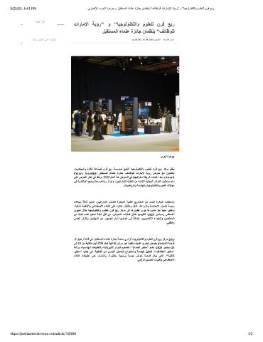 9/25/25, 4:41 PM يرﺎﺑﺧﻹا برﻌﻟا ةرھوﺟ :: لﺑﻘﺗﺳﻣﻟا ءﺎﻣﻠﻋ ةزﺋﺎﺟ نﺎﻣظﻧﯾ "فﺋﺎظوﻠﻟ تارﺎﻣﻹا ﺔﯾؤر" و "ﺎﯾﺟوﻟوﻧﻛﺗﻟاو موﻠﻌﻠﻟ نرﻗ ﻊﺑر