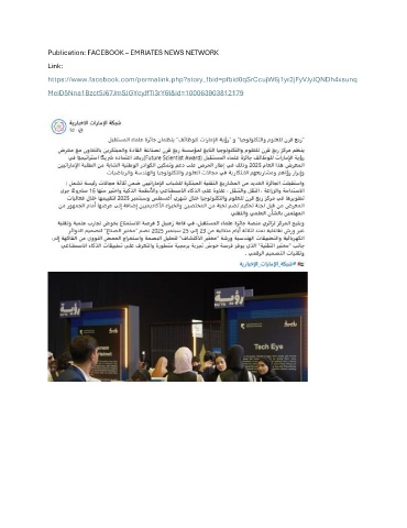 Publication: FACEBOOK – EMRIATES NEWS NETWORK Link: https://www.facebook.com/permalink.php?story_fbid=pfbid0qSrCcujW6j1yr2jFyVJyJQNDh4xsunq MeiD5Nna1Bzct5J67JmSJGYcyJfTi3rY6l&id=100063903812179