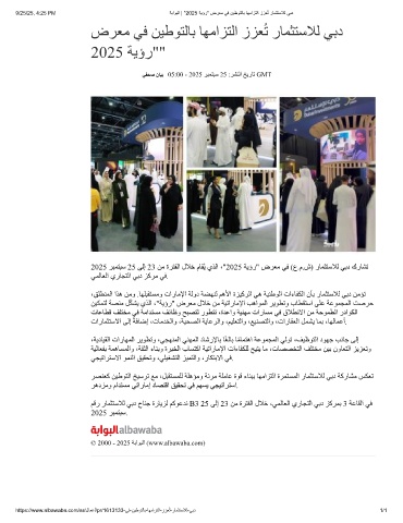 9/25/25, 4:25 PM ﺔﺑاوﺑﻟا | "2025 ﺔﯾؤر" ضرﻌﻣ ﻲﻓ نﯾطوﺗﻟﺎﺑ ﺎﮭﻣازﺗﻟا ززﻌُﺗ رﺎﻣﺛﺗﺳﻼﻟ ﻲﺑد