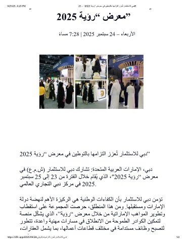 9/25/25, 4:29 PM 25 – ”2025 ﺔﯾؤر“ ضرﻌﻣ ﻲﻓ نﯾطوﺗﻟﺎﺑ ﺎﮭﻣازﺗﻟا ززﻌُﺗ رﺎﻣﺛﺗﺳﻼﻟ ﻲﺑدH