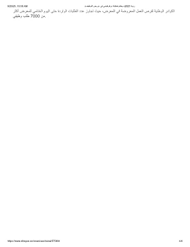 9/26/25, 10:50 AM «فﯾظوﺗﻟا ضورﻋ ﻲﻓ ﻲﺳﺎﯾﻗ مﻗرﺑ ﮫﺗﺎﯾﻟﺎﻌﻓ مﺗﺗﺧﯾ «2025 ﺔﯾؤر رﺛﻛأ ضرﻌﻣﻠﻟ ﻲﻣﺎﺗﺧﻟا موﯾﻟا ﻰﺗﺣ ةدراوﻟا تﺎﺑﻠطﻟا ددﻋ زوﺎﺟﺗ ثﯾﺣ ،ضرﻌﻣﻟا ﻲﻓ ﺔﺿورﻌﻣﻟا لﻣﻌﻟا صرﻔﻟ ﺔﯾﻧطوﻟا رداوﻛﻟا ﻲﻔﯾظو بﻠط 7000 نﻣ. https://www.albayan.ae/news/uae/dubai/575884 4/4
