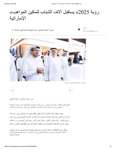 9/24/25, 2:23 PM «ﺔﯾﺗارﺎﻣﻹا بھاوﻣﻟا نﯾﻛﻣﺗﻟ بﺎﺑﺷﻟا فﻻآ لﺑﻘﺗﺳﯾ «2025 ﺔﯾؤر