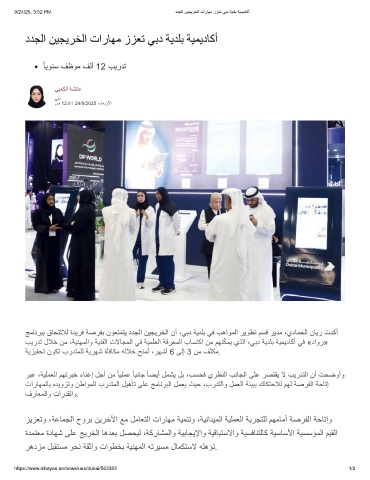 9/24/25, 3:52 PM ددﺟﻟا نﯾﺟﯾرﺧﻟا تارﺎﮭﻣ ززﻌﺗ ﻲﺑد ﺔﯾدﻠﺑ ﺔﯾﻣﯾدﺎﻛأ