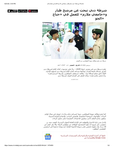 ﻲﺑد ﺔطﺮﺸﻟ يﻮﺠﻟا حﺎﻨﺠﻟا ﻲﻓ ﻞﻤﻌﻠﻟ ﻚﻟذو ،«رﺎﯿط مزﻼﻣ ﻲﻌﻣﺎﺟ»و.