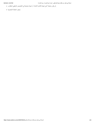 بوﻠطﻣﻟا ﻲﻔﯾظوﻟا صﺻﺧﺗﻟا ﻲﻓ ﺔﯾﻌﻣﺎﺟ ةدﺎﮭﺷ وأ ،ﺔﻣﺎﻌﻟا ﺔﯾوﻧﺎﺛﻟا ةدﺎﮭﺷ ﻰﻠﻋ ًﻼﺻﺎﺣ نوﻛﯾ نأ.