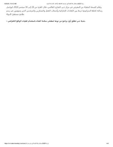 ﻞﺻاﻮﻴﻟ ،2026 ﺮﺒﻤﺘﺒﺳ 30 ﻰﻟإ 28 ﻦﻣ ةﺮﺘﻔﻟا لالﺧ ،ﻲﻤﻟﺎﻌﻟا يرﺎﺠﺘﻟا ﻲﺑد ﺰﻛﺮﻣ ﻲﻓ ضﺮﻌﻤﻟا ﻦﻣ ﺔﻠﺒﻘﻤﻟا ﺔﺨﺴﻨﻟا مﺎﻘﺗو