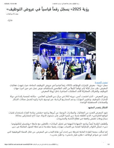 تﺎﻴﻟﺎﻌﻓ تﺪﻬﺷ ﺚﻴﺣ ،ﺔﺣﺎﺘﻤﻟا ﻒﻴﻇﻮﺘﻟا ضوﺮﻋ ﻲﻓ ًﺎﻴﺳﺎﻴﻗ ًﺎﻤﻗر «2025 ﻒﺋﺎﻇﻮﻠﻟ تارﺎﻣإلا ضﺮﻌﻣ - ﺔﻳؤر» ﻞﺠﺳ