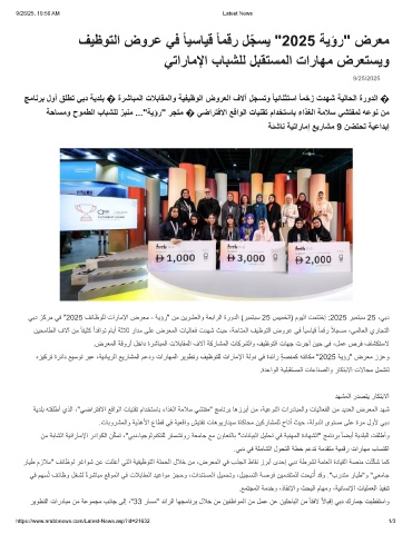 ﻲﺑد زﻛرﻣ ﻲﻓ "2025 فﺋﺎظوﻠﻟ تارﺎﻣﻹا ضرﻌﻣ - ﺔﯾؤر" نﻣ نﯾرﺷﻌﻟاو ﺔﻌﺑارﻟا ةرودﻟا (رﺑﻣﺗﺑﺳ 25 سﯾﻣﺧﻟا) موﯾﻟا تﻣﺗﺗﺧإ :2025 رﺑﻣﺗﺑﺳ 25 ،ﻲﺑد