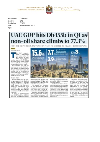 Publication: Gulf News Country: UAE Circulation: 77,781 Date: 08 September 2025 Page: 1