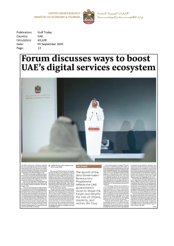 Publication: Gulf Today Country: UAE Circulation: 49,500 Date: 05 September 2025 Page: 13