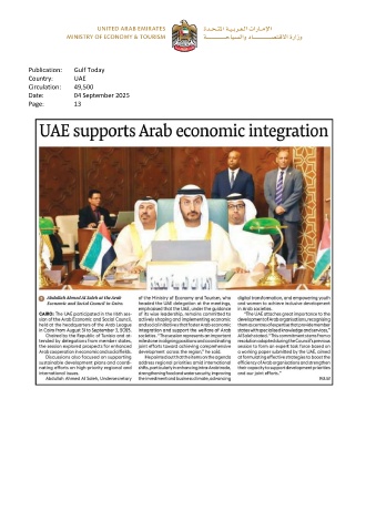 Publication: Gulf Today Country: UAE Circulation: 49,500 Date: 04 September 2025 Page: 13
