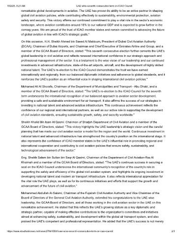 10/2/25, 8:21 AM UAE wins seventh consecutive term on ICAO Council