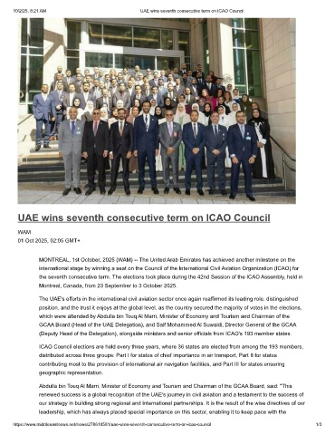 10/2/25, 8:21 AM UAE wins seventh consecutive term on ICAO Council