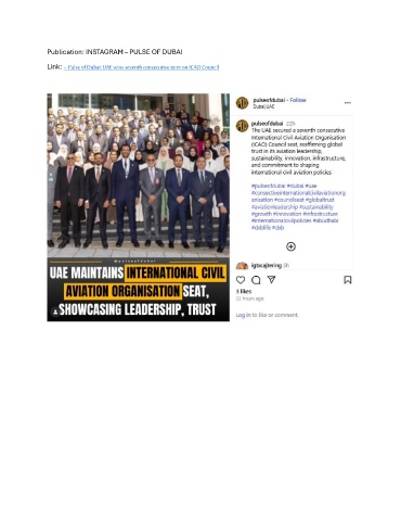 Publication: INSTAGRAM – PULSE OF DUBAI Link: – Pulse of Dubai: UAE wins seventh consecutive term on ICAO Council