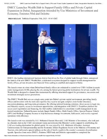 10/1/25, 2:10 PM  DMCC Launches Wealth Hub to Support Family Office and Private Capital Expansion in Dubai, Inauguration Attended by Uae Minis…