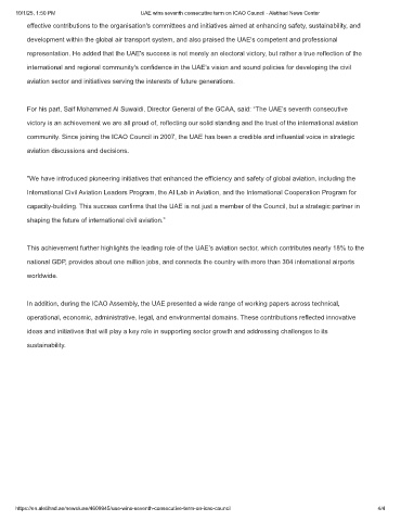 10/1/25, 1:50 PM UAE wins seventh consecutive term on ICAO Council - Aletihad News Center