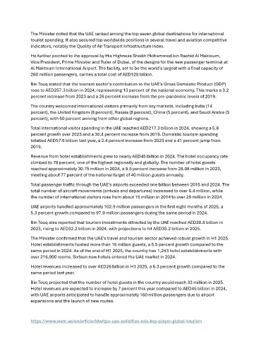 The Minister confirmed that the UAE's travel and tourism sector achieved robust growth in H1 2025.