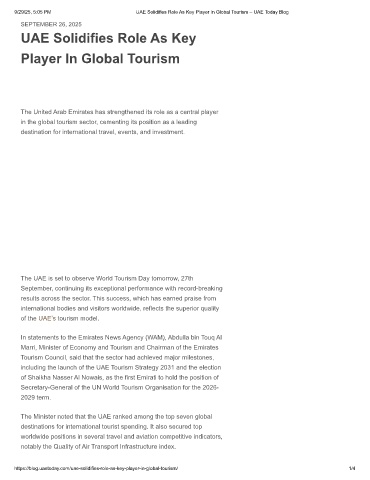 9/29/25, 5:05 PM UAE Solidifies Role As Key Player In Global Tourism – UAE Today Blog