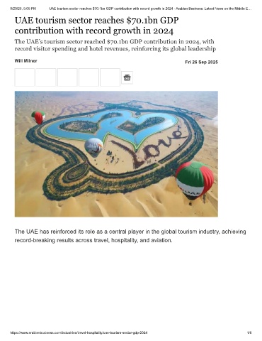 9/29/25, 5:05 PM UAE tourism sector reaches $70.1bn GDP contribution with record growth in 2024 - Arabian Business: Latest News on the Middle E…
