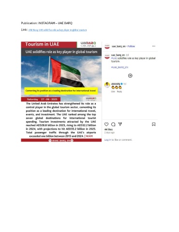 Publication: INSTAGRAM – UAE BARQ Link: UAE Barq: UAE solidifies role as key player in global tourism