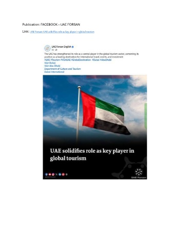 Publication: FACEBOOK – UAE FORSAN Link: UAE Forsan: UAE solidifies role as key player in global tourism
