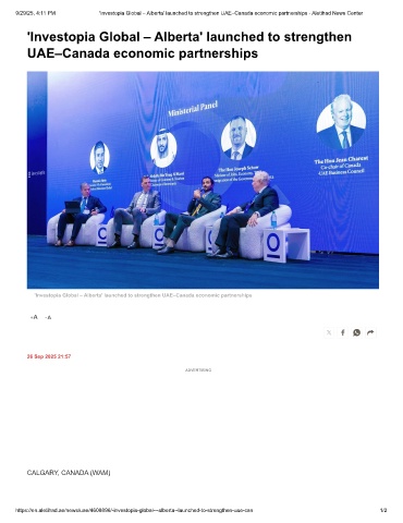9/29/25, 4:11 PM 'Investopia Global – Alberta' launched to strengthen UAE–Canada economic partnerships - Aletihad News Center