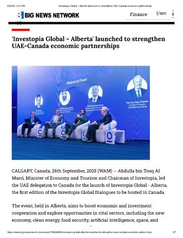 9/29/25, 4:15 PM 'Investopia Global - Alberta' launched to strengthen UAE-Canada economic partnerships