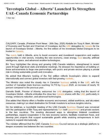 9/29/25, 4:16 PM Investopia Global – Alberta Launched To Strengthen UAE–Canada Economic Partnerships | Pakistan Point
