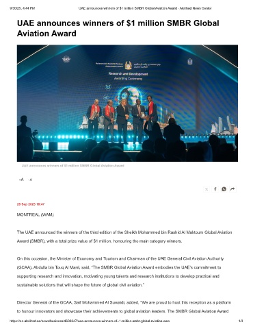 9/30/25, 4:44 PM UAE announces winners of $1 million SMBR Global Aviation Award - Aletihad News Center