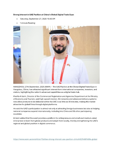 HANGZHOU, 27th September, 2025 (WAM) -- The UAE Pavilion at the Global Digital Trade Expo in